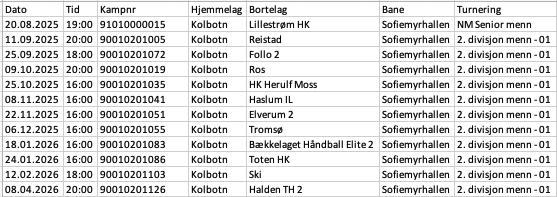 Kolbotn Håndball A-laget - sesongkort 2025/26